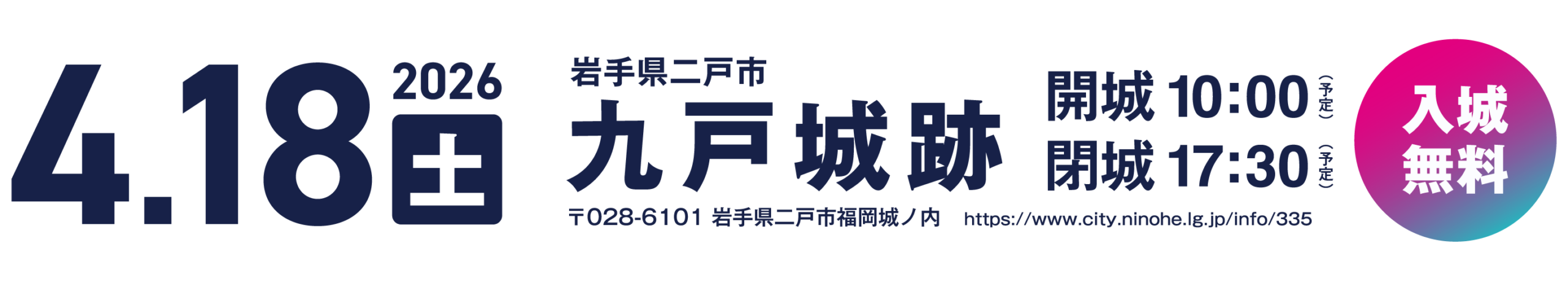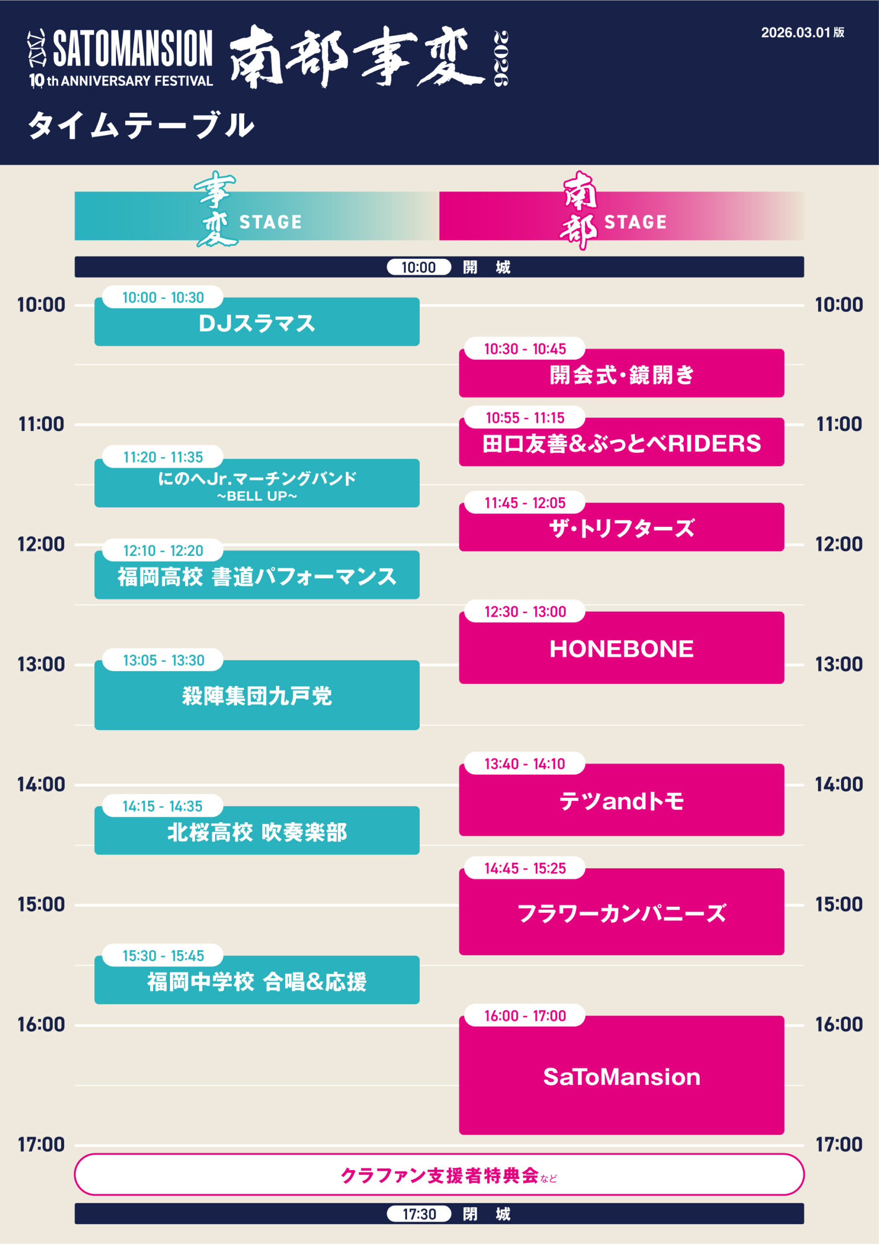 | 開催時間 | 開城10:00 / 開演10:30 / 終演17:00 / 閉城17:30 (※予定) |